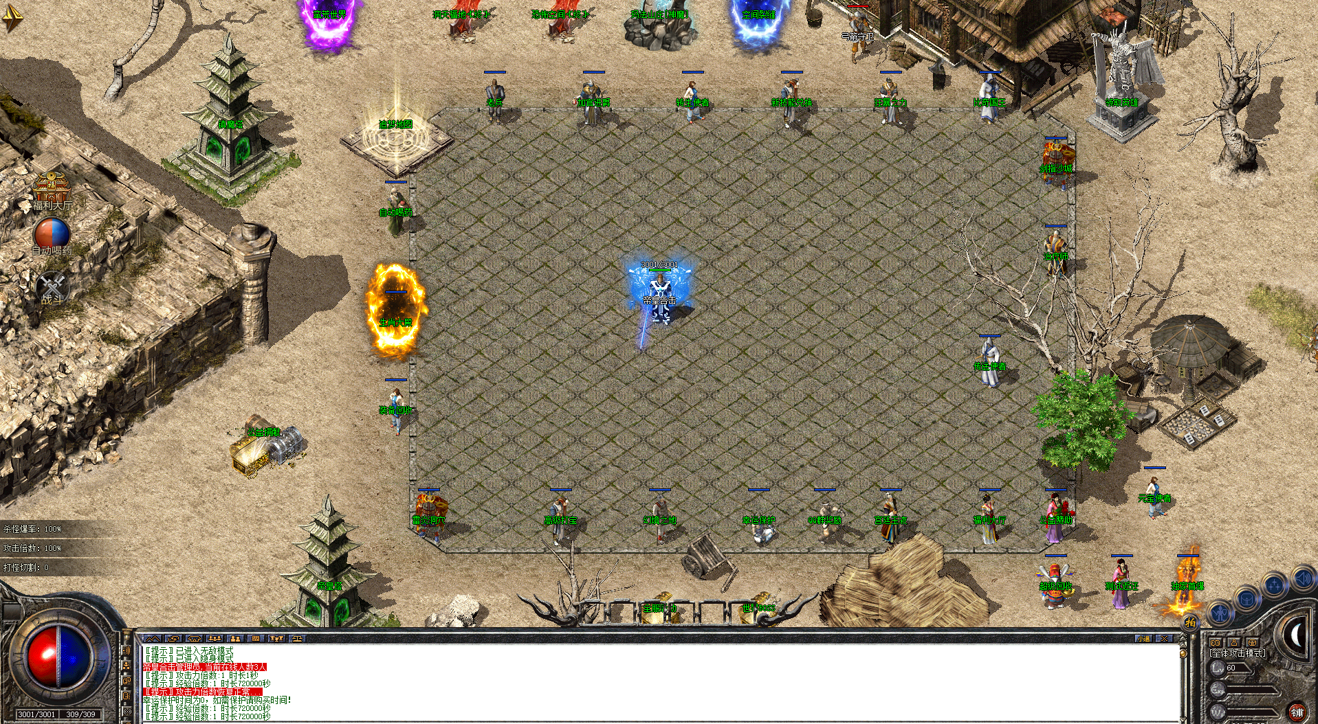【特色介绍】:自动挂机,自动捡取,自动回收,三端互通,手机电脑都可以玩,轻松愉快玩耍!